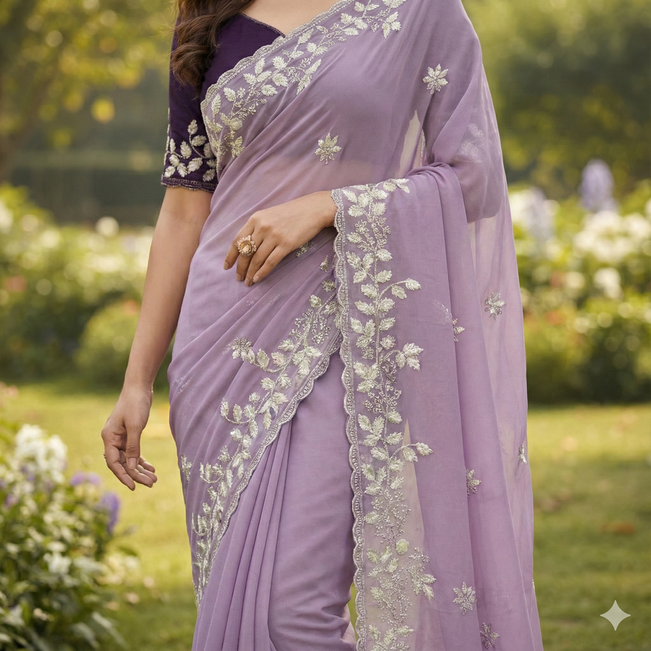 Silver Grey Georgette Saree with Designer Embroidered Blouse