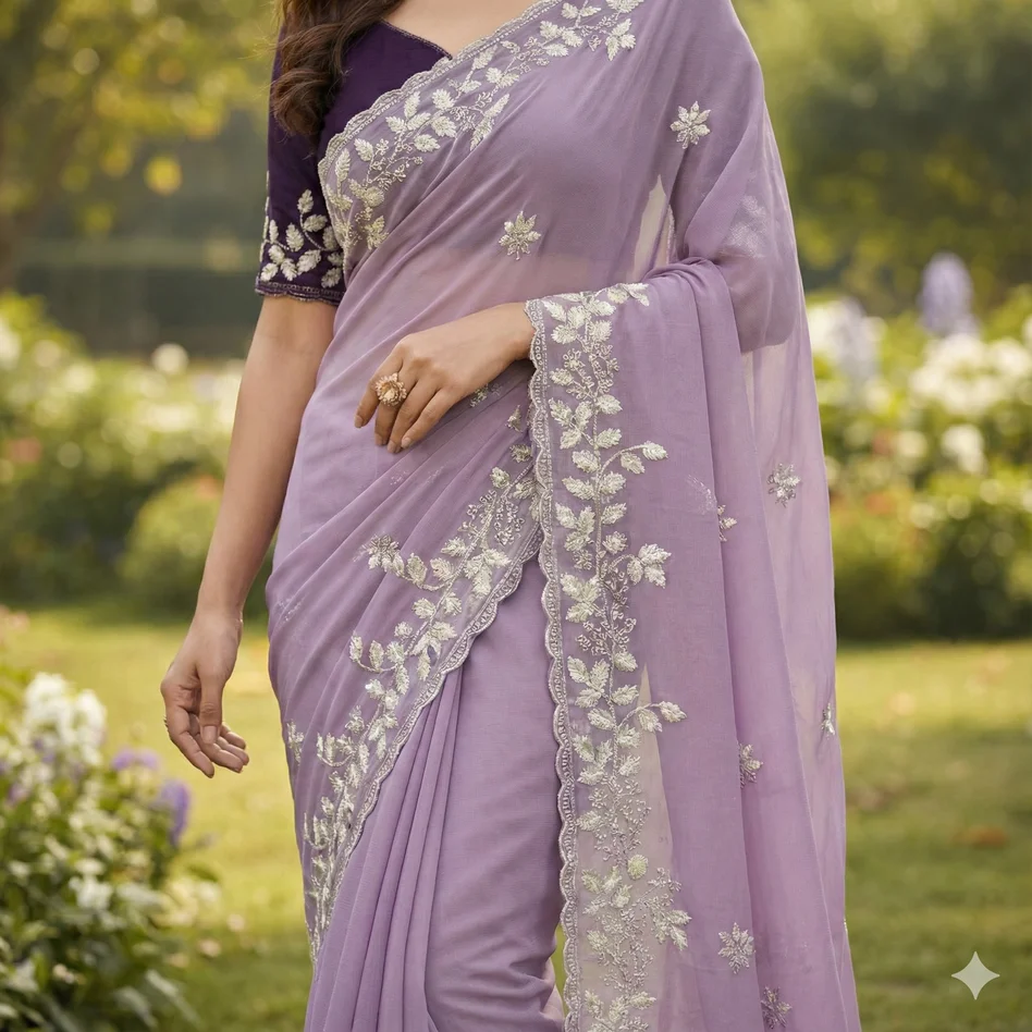 Purple Georgette Saree with Embroidered Blouse