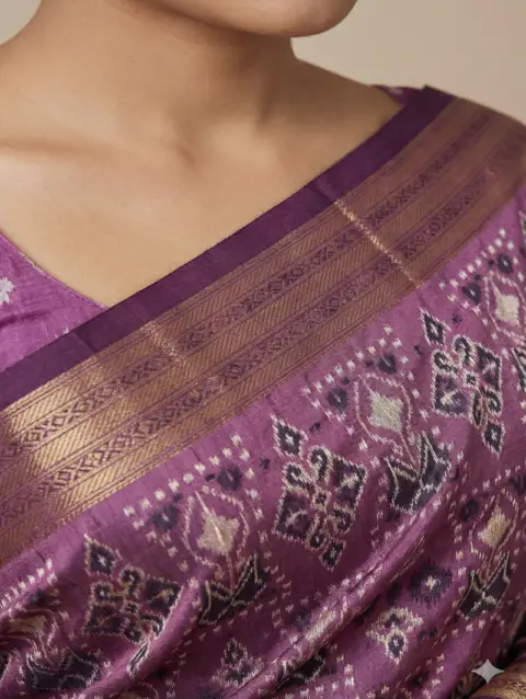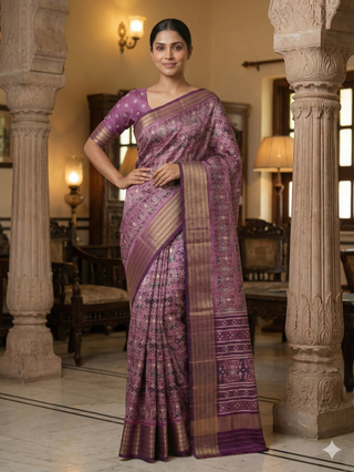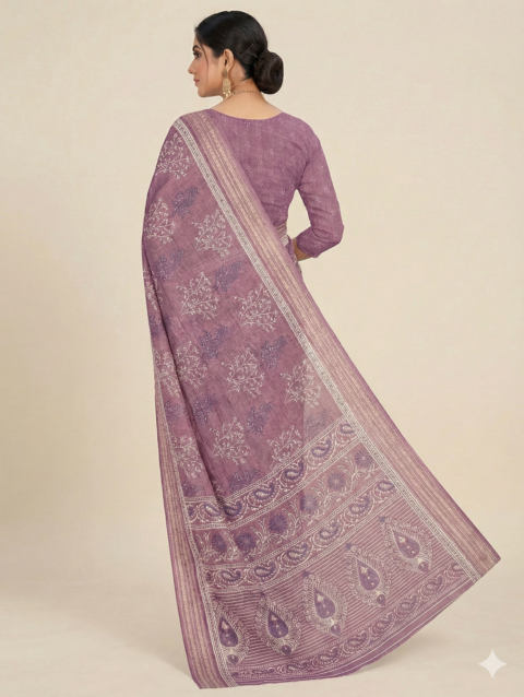 Mauve Printed Georgette Saree with Elegant Traditional Border