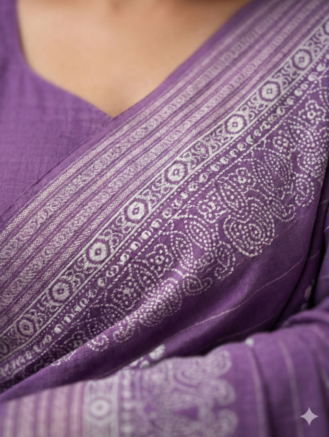 Purple Printed Georgette Saree with Elegant Traditional Border