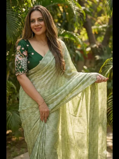 Pista Green Georgette Saree with Designer Embroidered Blouse