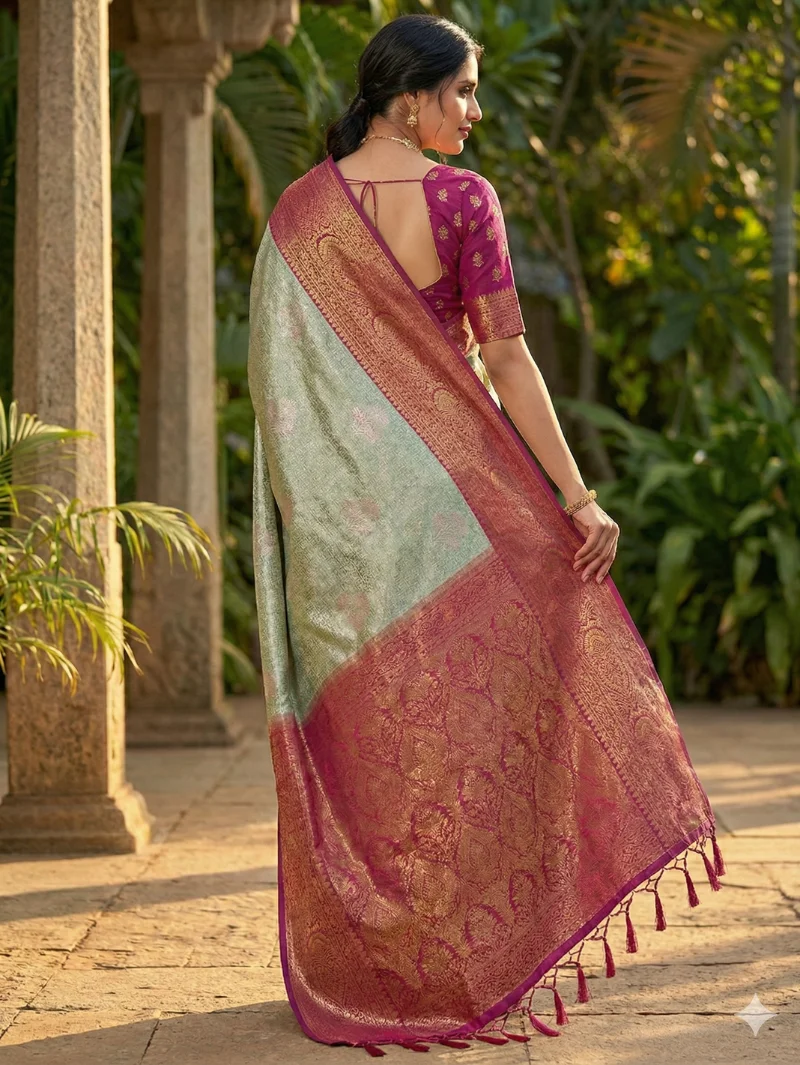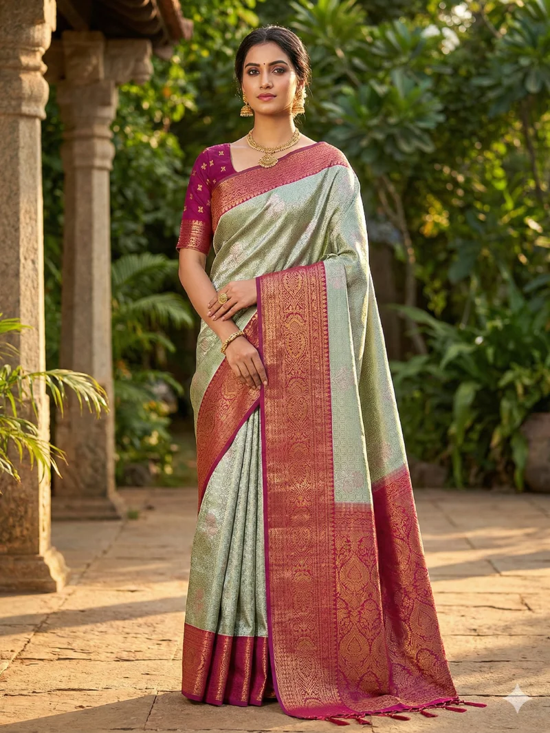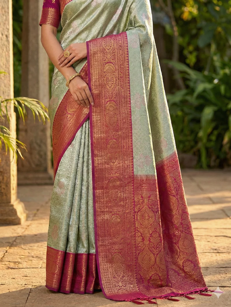 Color: Pastel Green with Contrast Korvai Border