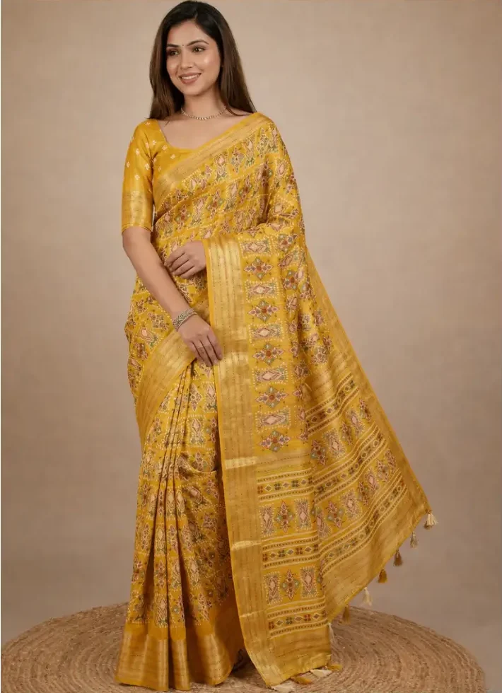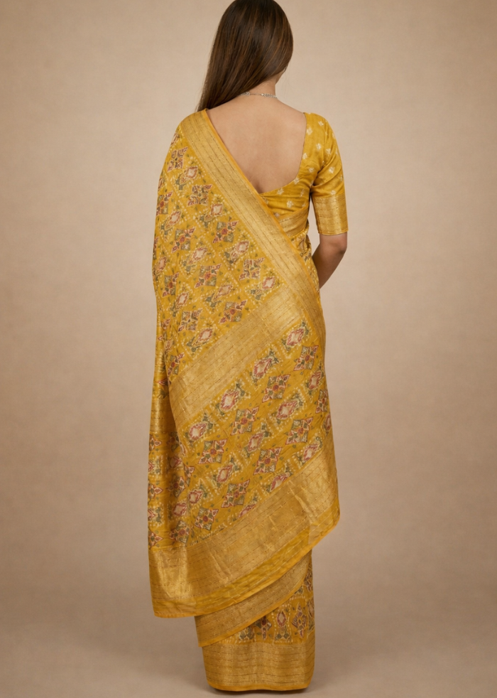 Made from lightweight georgette fabric, the saree drapes fluidly, making it comfortable for long hours of wear while maintaining a refined silhouette. The rich mustard hue enhances the detailed patterns, making it suitable for festive gatherings, casual functions, office wear, or cultural occasions.