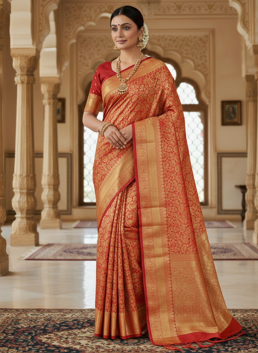One Gram Gold Tissue Saree – Premium Ethnic Wear for Weddings & Grand Occasions